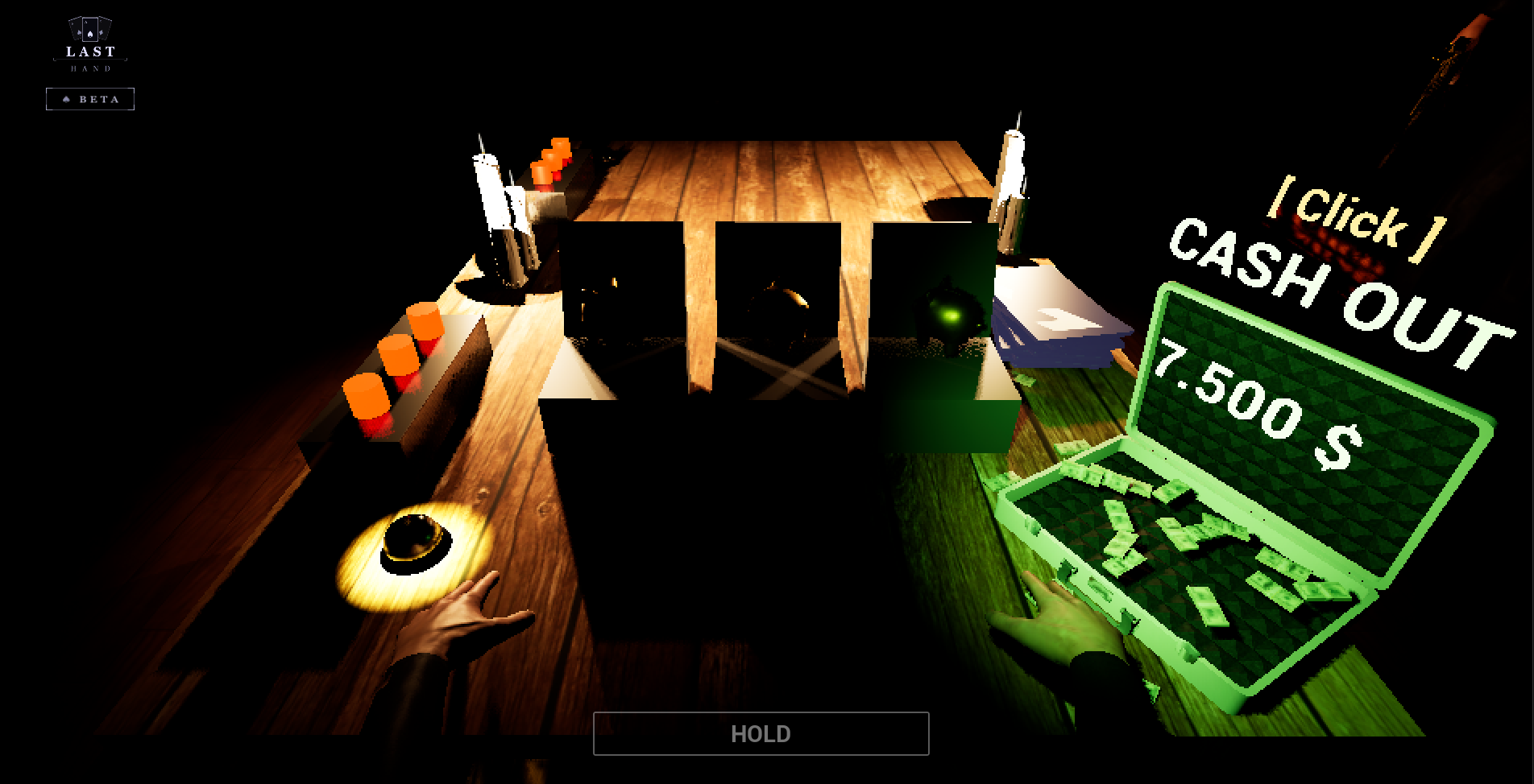 Last Hand is an atmospheric card game where debt is paid in rounds. Beat your opponents at 21, earn your freedom — or don't leave the table at all.